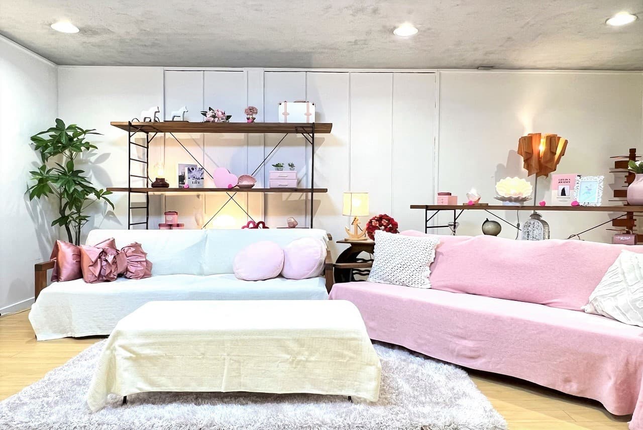 通常は『ホワイトの壁面2か所』をご指定の色(1,000色以上)に塗装した状態で撮影可能なプラン。壁の色が変わるため『番組テーマカラー』や『商品カラー』により合わせた撮影などでご利用頂いています。